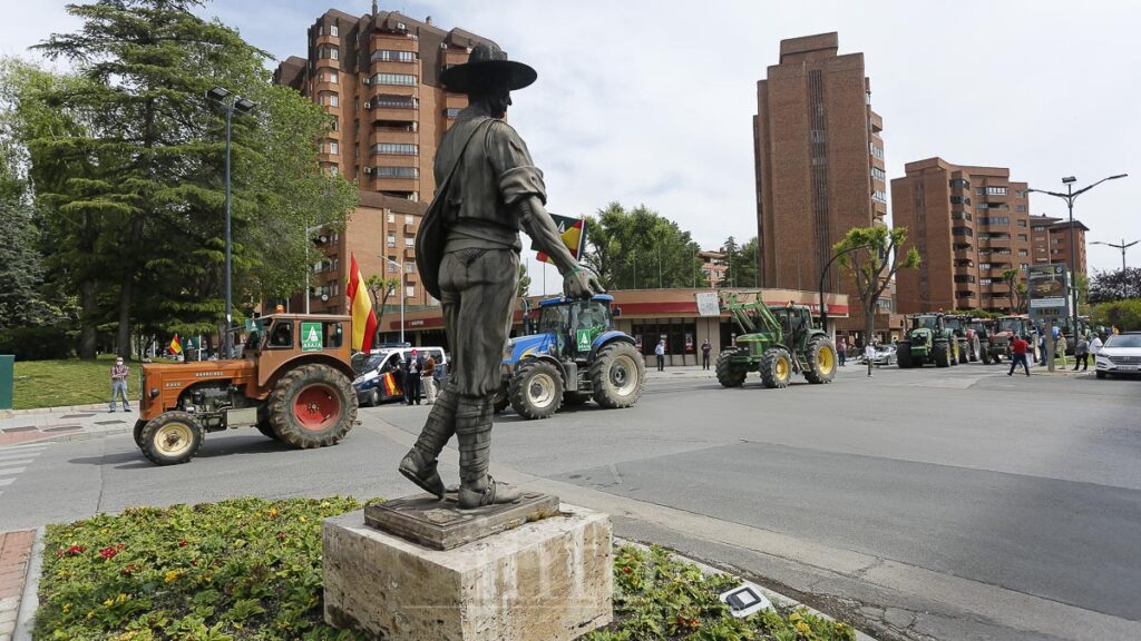 Numerosos tractores han colocado sus propias pancartas de protesta en las que coincidían en destacar lo «imprescindible» de su labor, aún más en una región como Castilla-La Mancha.