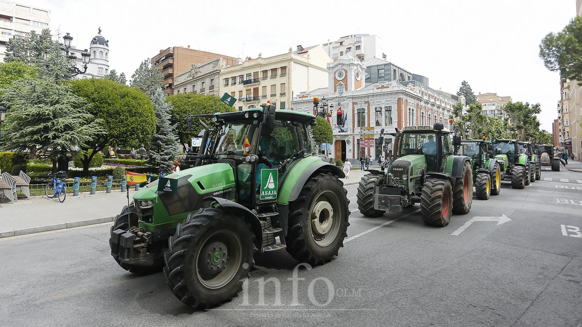 Más de 350 tractores, además de otros vehículos individuales y manifestantes a pie, han recorrido este mediodía del último jueves de mayo el centro de Albacete, convocados por la organización agraria Asaja, para exigir mejoras para el campo y la ganadería ante una situación «cada día más insostenible».