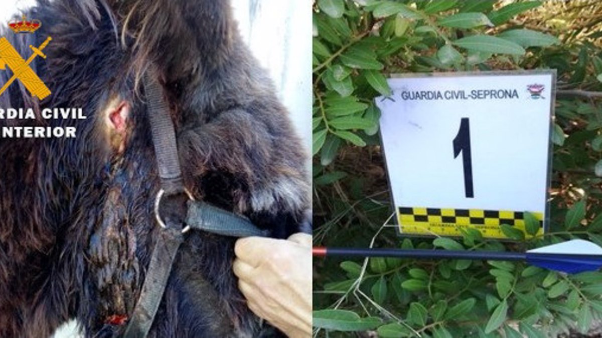 Efectivos del Servicio de Protección de la Naturaleza (Seprona) de la Guardia Civil de Almansa han investigado a un menor de edad como presunto autor de un delito de maltrato animal, ocasionando heridas sobre dos asnos, mediante el disparo de flechas con un arco, resultando uno de ellos herido y el otro muerto.