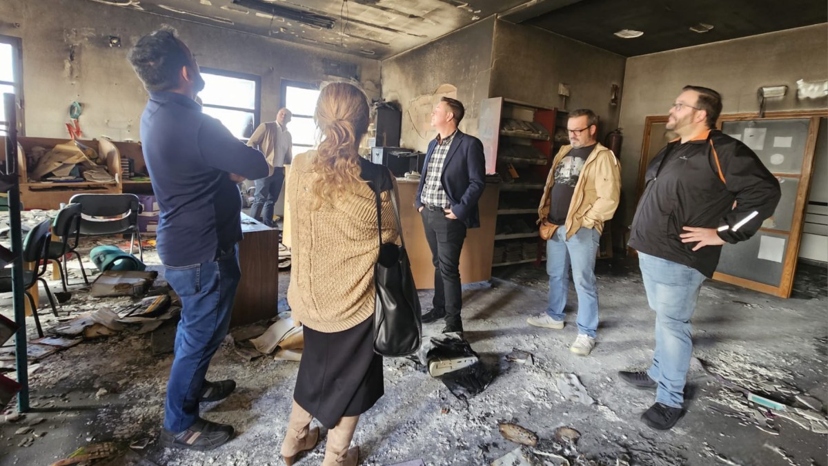 El Presidente de la Diputación de Albacete, Santi Cabañero, ha visitado Alatoz para evaluar de primera mano los daños ocasionados por el reciente incendio que se producía en la biblioteca municipal. Acompañado del alcalde, Enrique García Serrano, y parte de su equipo; de la bibliotecaria, MªCarmen Hernéndez; y del diputado responsable del Servicio Especial de Prevención de Incendios de la propia Diputación, José Antonio Gómez, Cabañero ha expresado su firme compromiso con la reconstrucción y el fortalecimiento de este “espacio vital en el ámbito educativo y cultural” de la localidad.