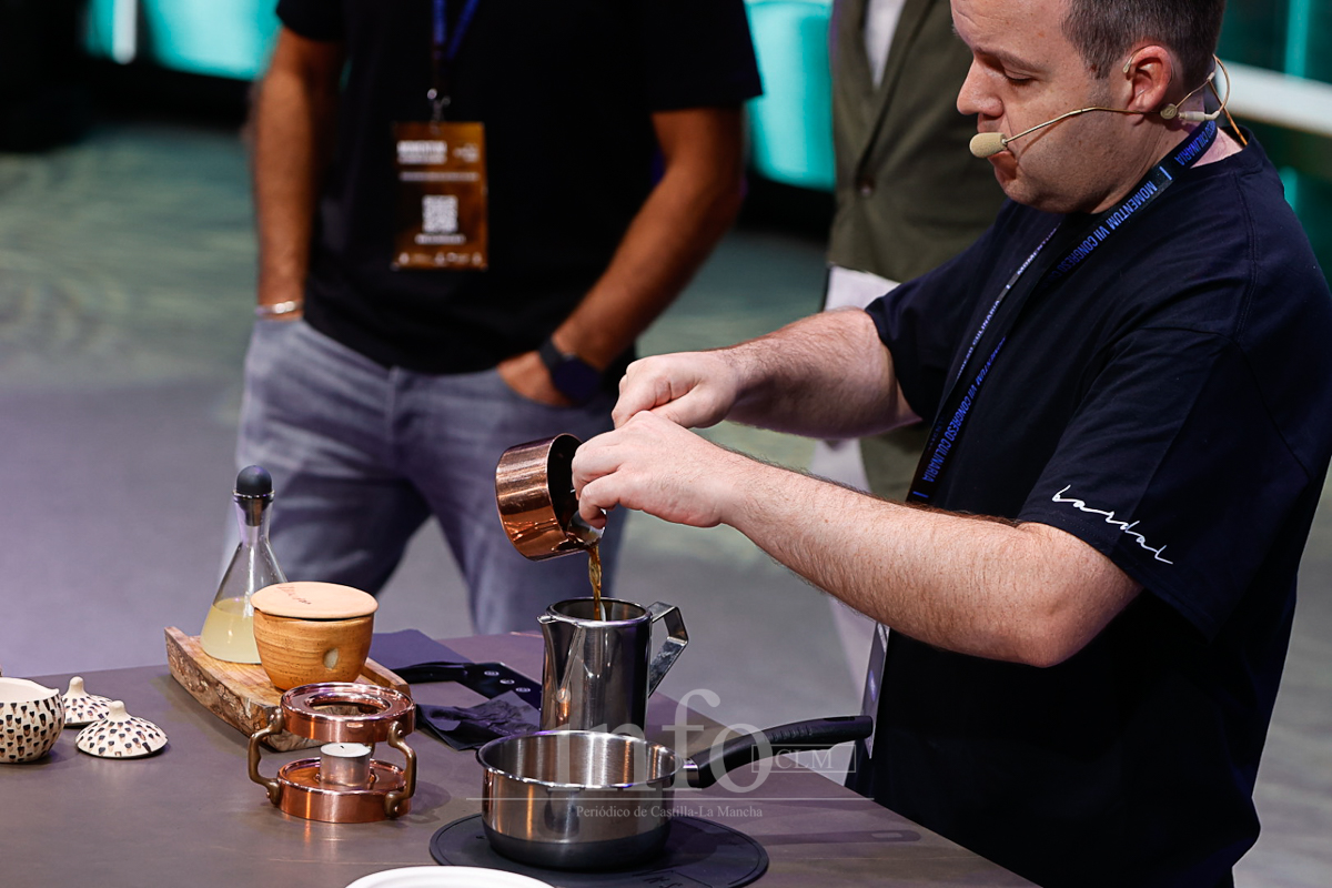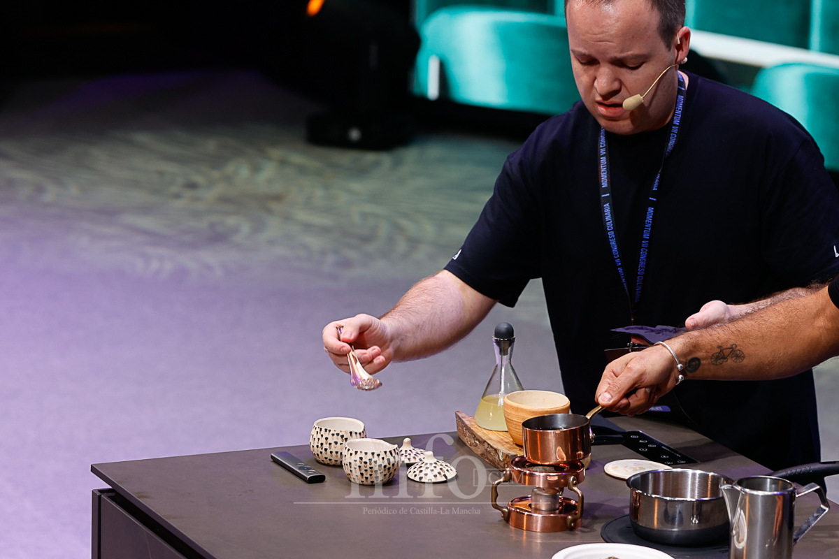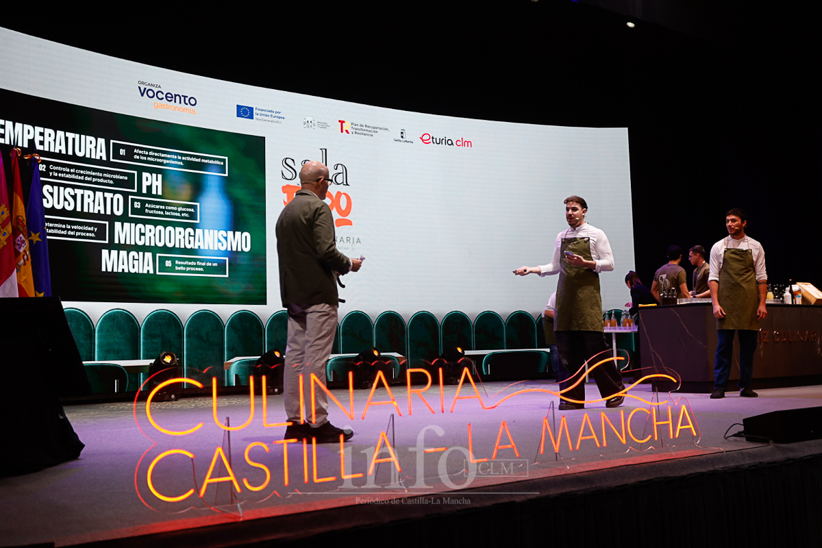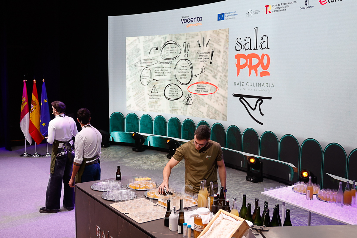 El chef Juan Sahuquillo y el Chef de fermentación Andrés Vera, ambos del restaurante OBA-** (Casas-Ibáñez, Albacete), protagonizaron una ponencia inspiradora de la jornada: “Natura”, un viaje sensorial al corazón de la Manchuela a través de sus fermentaciones vivas y su maridaje no alcohólico.