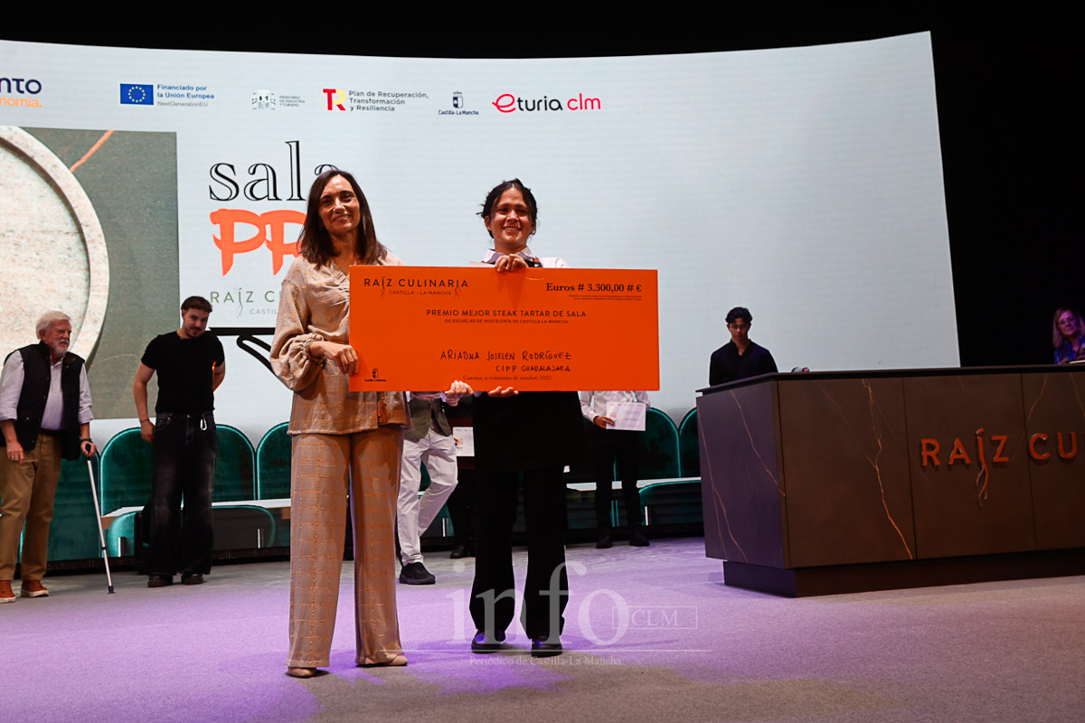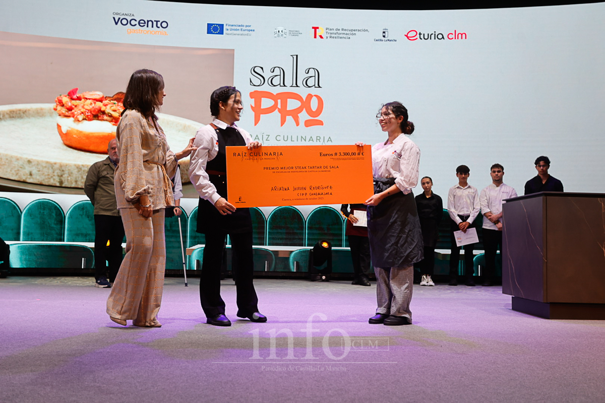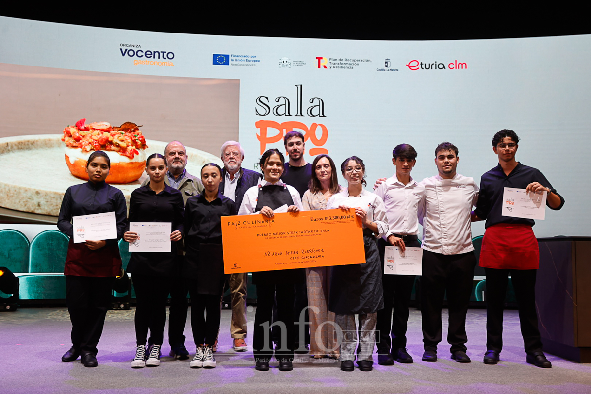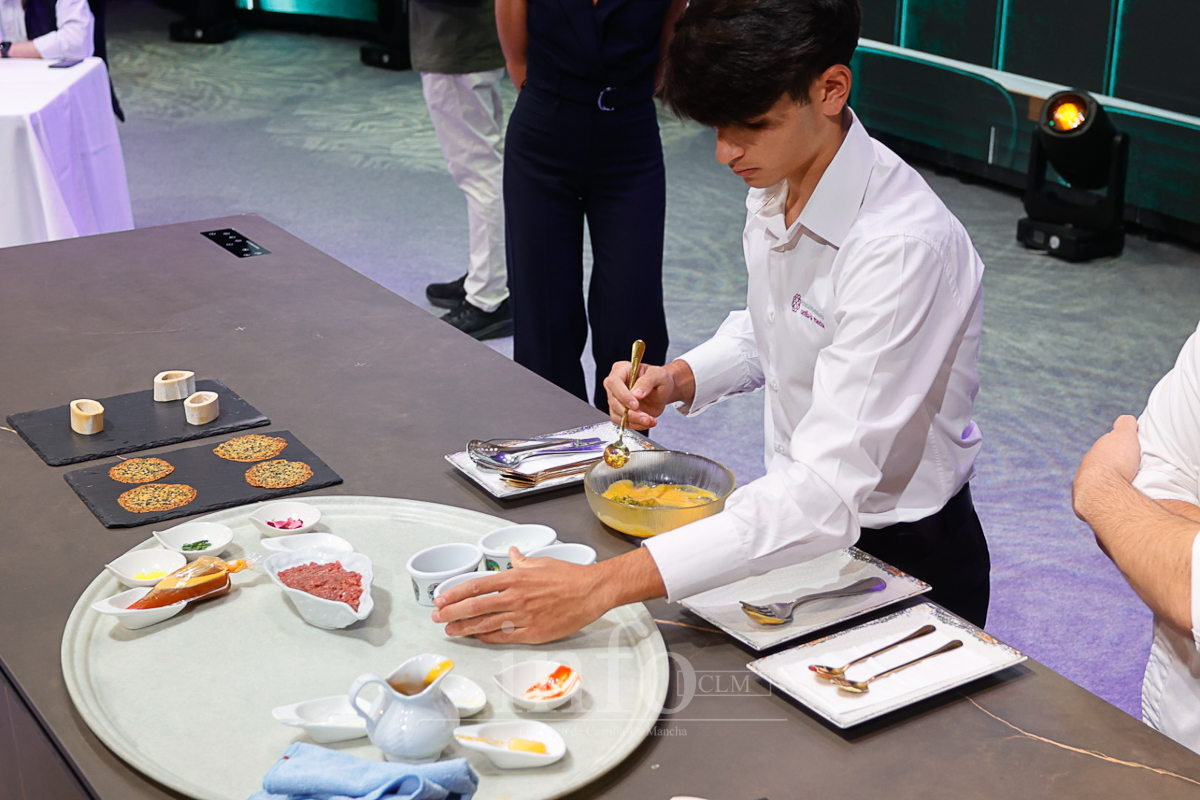 La jornada finalizó con un emocionante concurso gastronómico, en concreto la segunda edición de Steak Tartar, que reunió a cinco participantes: Sofía Pacheco, del IES Alondo de Orozco (Oropesa, Toledo); María Isabel Muñoz, del IES Fray Luis de León (Las Pedroñeras, Cuenca); Mateo Zarco de la Escuela de Hostelería de Castilla-La Mancha (Tembleque, Toledo), Ariadna Rodríguez del CIFP Guadalajara de Guadalajara y Alejendro García del IES Alonso de Orozco (Oropesa, Toledo).