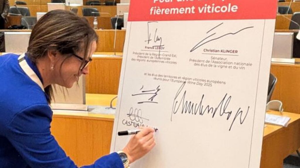 Coincidiendo con la celebración del Día Europeo del Vino (European Wine Day) y en el marco de la presentación del Manifiesto de Estrasburgo, suscrito por 23 regiones europeas comprometidas con la defensa del vino como emblema de identidad, cultura y cohesión territorial, el Gobierno de Castilla-La Mancha ha hecho valer su posición de liderazgo como principal región vitivinícola de Europa y ha defendido con éxito la inclusión en dicho texto de la preocupación por la desaparición de la obligatoriedad de la Intervención Sectorial Vitivinícola (ISV) en el futuro reglamento de las OCM de la Política Agraria Común (PAC 2028-2034).