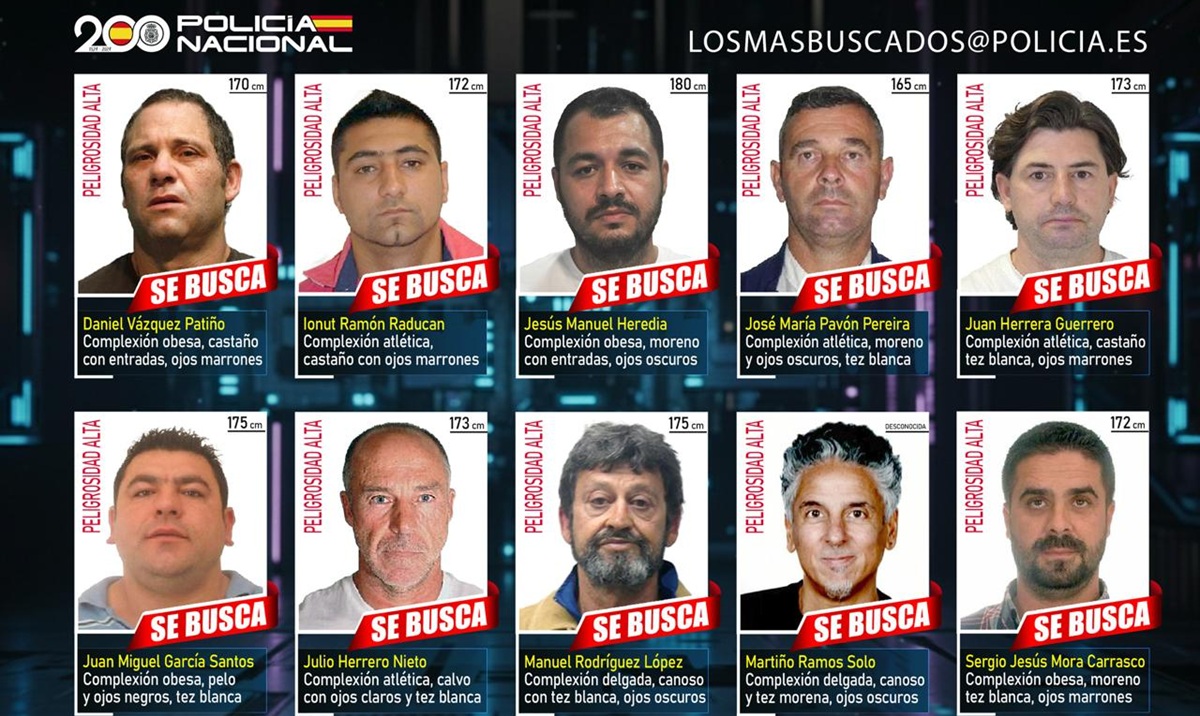La Policía Nacional solicita la colaboración ciudadana para lograr la detención de los diez fugitivos más buscados en España. Son personas, con distintos perfiles delictivos, reclamadas por delitos de especial gravedad como asesinato, agresiones sexuales a menores, tráfico de drogas, trata de seres humanos o robos con violencia. Durante el año 2024 la Sección de Localización de Fugitivos ha participado en la detención de 460 prófugos de la justicia por distintas reclamaciones tanto nacionales como internacionales.