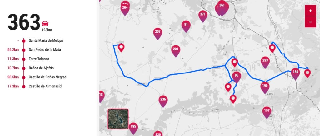 Para finalizar, la provincia de Guadalajara cuenta con un segundo itinerario ligeramente más corto de 210 kilómetros, que arranca en Atienza y permite disfrutar del Castillo de Riba de Santiuste, de las Salinas de Imón, entre otros, y finaliza en el Castillo de Villel de Mesa.