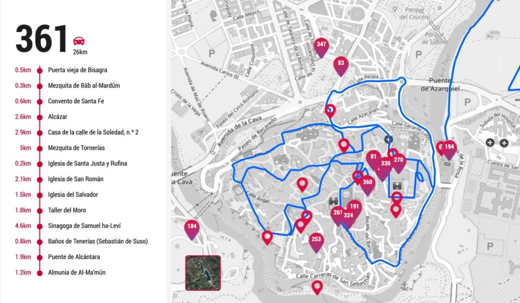 Una de las rutas de caminos de Al-Ándalus es ‘La Medina de Tulaytula’, que recorre tan solo 26 kilómetros, permitiendo disfrutar de gran parte del casco histórico de Toledo empezando desde Puerta Vieja de Bisagra hasta Almunia de Al-Ma’mun, pasando por la Mezquitas de Tornerías, la Iglesia de Santa Justa y Rufina, Alcázar, la Iglesia de San Román y la del Salvador, entre otros. Una ruta perfecta para aquellos que buscan explorar la huella andalusí en Toledo.
