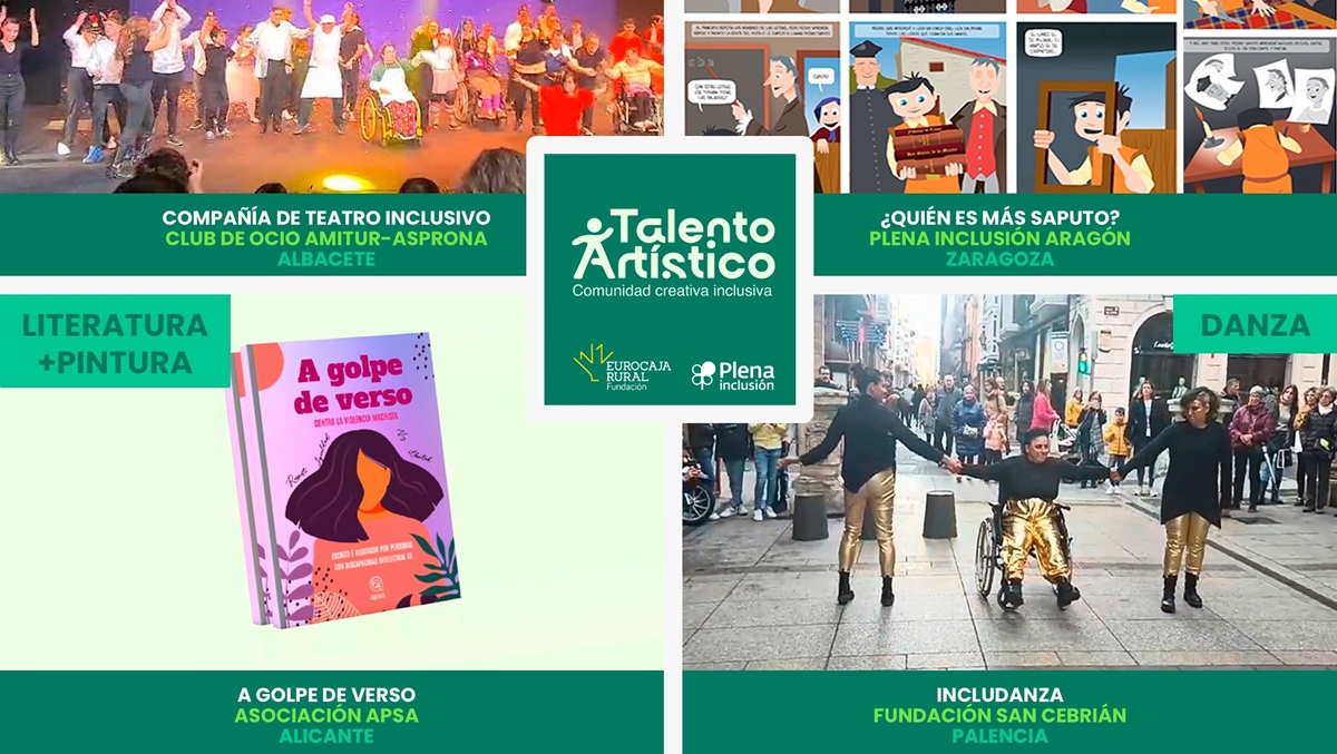 Los seleccionados son: La Compañía de Teatro Inclusivo del Club de Ocio Amitur (asprona, Albacete), ‘¿Quién es más Saputo?’ de Plena Inclusión Aragón (Zaragoza), ‘A Golpe de Verso’ de la Asociación APSA (Alicante) e ‘Includanza’ de la Fundación San Cebrián (Palencia).