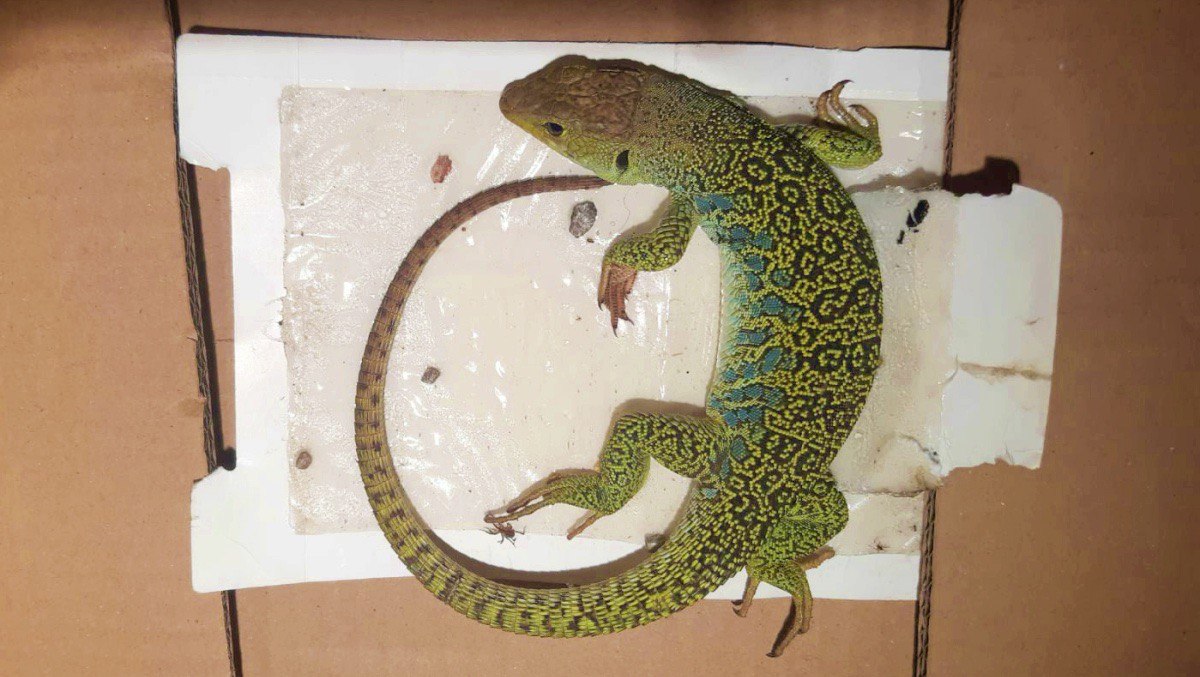 Según han informado los Agente Medioambientales de Castilla-La Mancha, el lagarto ocelado que aparece en la imagen que acompaña estas líneas fue descubierto en una nave industrial de Ciudad Real.