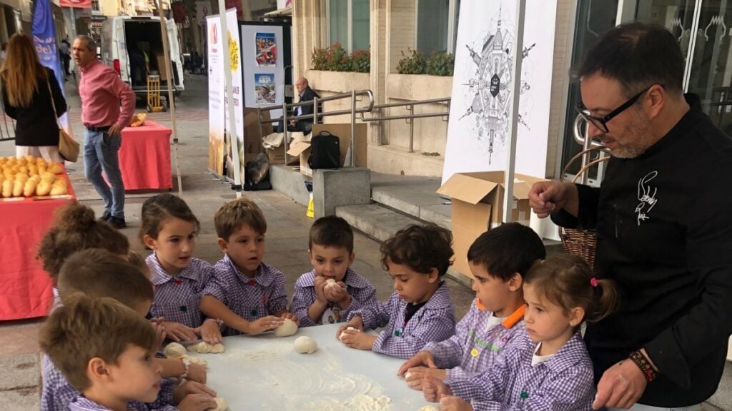 Durante la jornada, además del reparto de panes a todos los visitantes, decenas de alumnos de diversos colegios de la capital han participado en divertidos talleres en los que han podido conocer de la mano de profesionales la forma tradicional de elaboración del Pan de Cruz en las panaderías de la Asociación.
