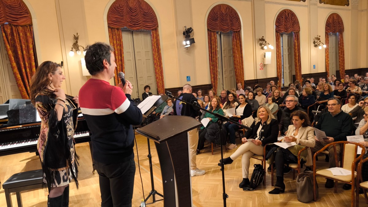 Al director de la OFMAN le ha acompañado la voz de María Rodríguez, presentada como una de las mejores voces de España, quien ha cantado y entusiasmado a los participantes, “escuchaba la zarzuela con mis abuelos en casa y creo que no hay mejor terapia para el alma que la música”, confesaba la cantante.