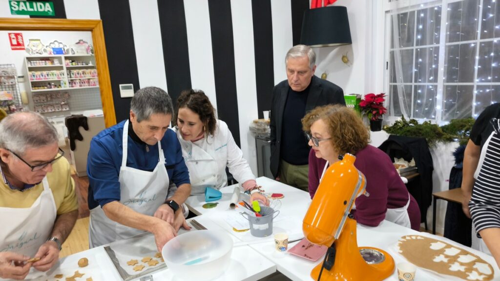 El Taller de Repostería organizado por la Universidad Popular ha cumplido su tercera sesión. Sus dieciséis participantes han podido conocer cómo se elaboran de forma correcta algunos productos típicos de estas fechas navideñas, como el “tronco de Navidad” o las galletas de jengibre. La monitora, María Aragonés, se encarga de que aprendan las recetas y los mejores consejos para que ellos mismos puedan replicar estos dulces en sus casas sin dificultad. Para ello emplean ingredientes comunes, que se pueden encontrar fácilmente en cualquier supermercado.