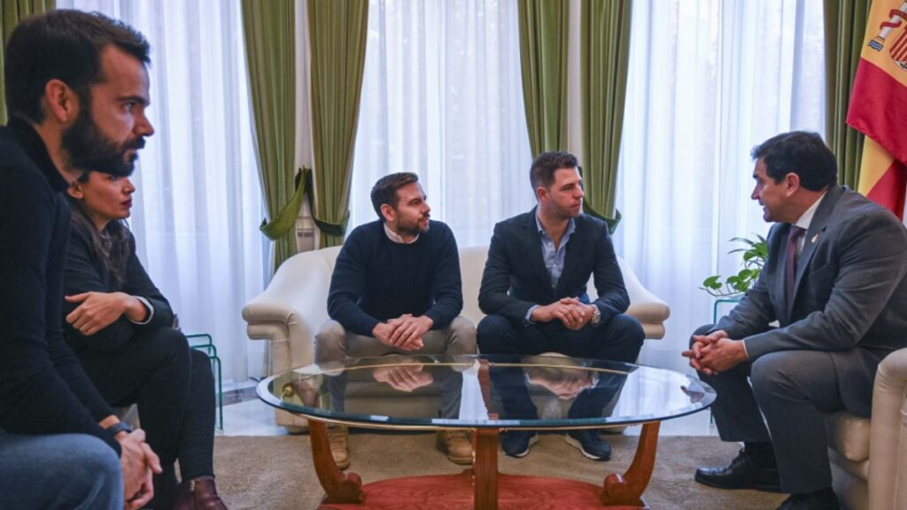 El presidente de la Institución provincial ha mantenido una reunión con la la Asociación de Jóvenes Empresarios de Ciudad Real. Miguel Ángel Valverde ha recibido a David Ballesteros, presidente de AJE Ciudad Real, Noelia García, secretaria general, Jesús David Llanos, tesorero y presidente de la junta local del Campo de Calatrava, Gonzalo Garrido, vicepresidente, y Alicia Rojas, gerente de la Asociación.
