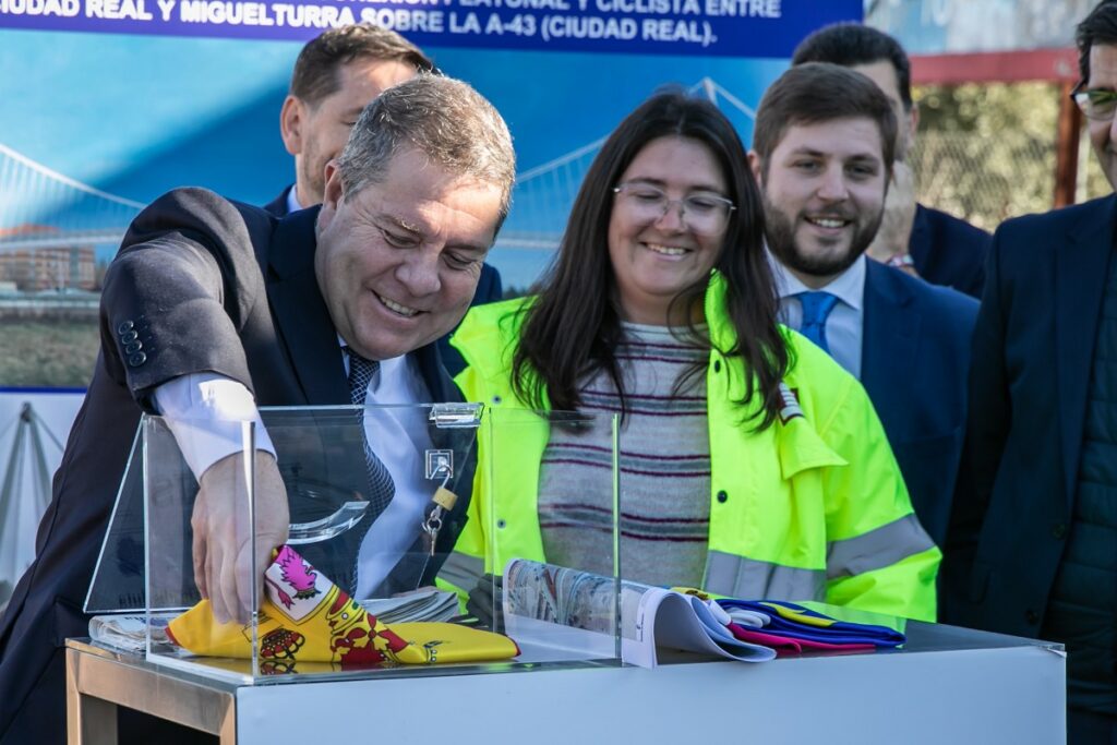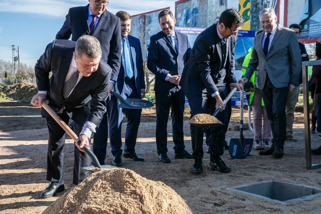 El presidente del Gobierno de Castilla-La Mancha, Emiliano García-Page, el vicepresidente segundo de la Junta, José Manuel Caballero; el consejero de Fomento, Nacho Hernando, así como los alcaldes de Ciudad Real y Miguelturra, Francisco Cañizares y Luis Ramón Mohino, respectivamente, han sido los encargados de colocar este lunes la primera piedra de esta importante infraestructura con la que se pone fin a una demanda histórica de los vecinos de ambos municipios.