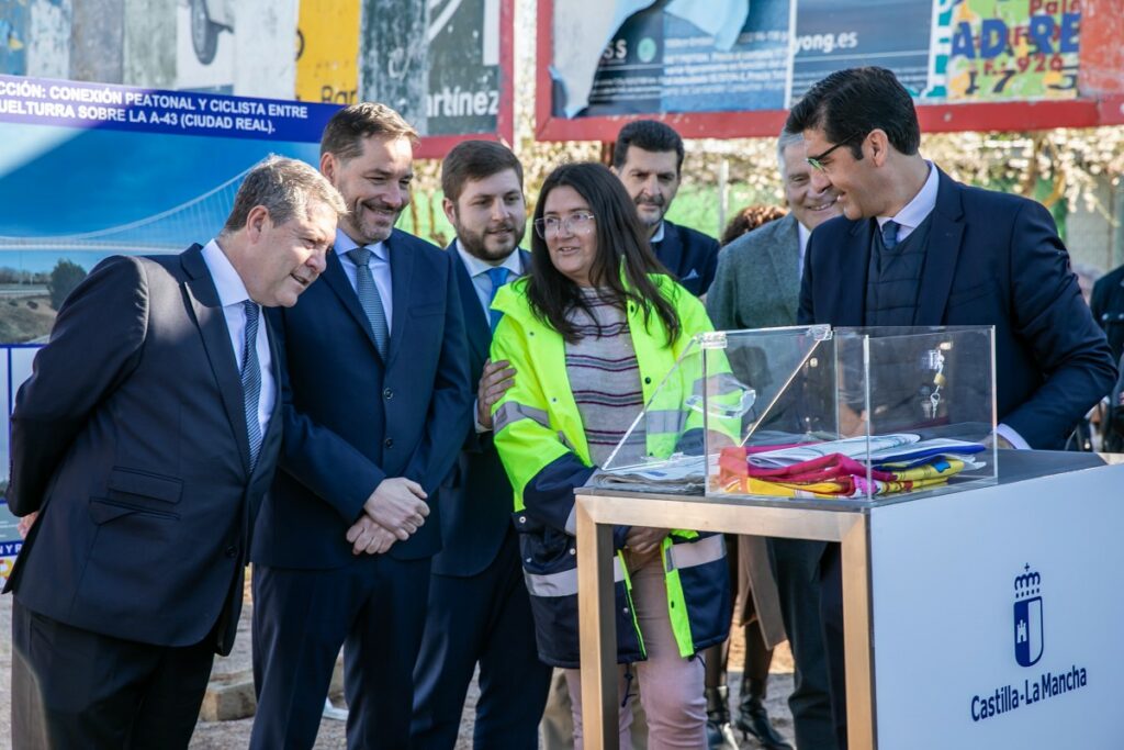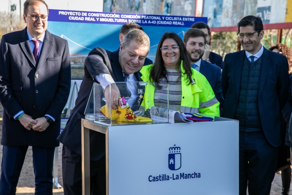 La pasarela ciclopeatonal que unirá a los vecinos de Ciudad Real y Miguelturra de una manera sostenible será una realidad dentro de 18 meses después de que este lunes se haya dado el pistoletazo de salida a las obras de construcción de esta infraestructura con el acto de colocación de la primera piedra.
