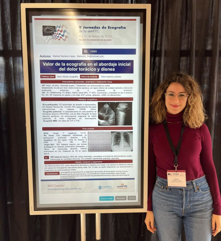 “La ecografía clínica no sólo ayuda en el manejo clínico de la patología urgente y emergente, sino que también facilita la comunicación con otros profesionales sanitarios, priorizando el estudio y tratamiento precoz de los pacientes que lo requieran. Un valor más de la formación en ecografía clínica en las diferentes especialidades”, destaca la ganadora en la modalidad ‘Póster con defensa’ de las V Jornadas Nacionales de Ecografía Cínica de la semFYC,