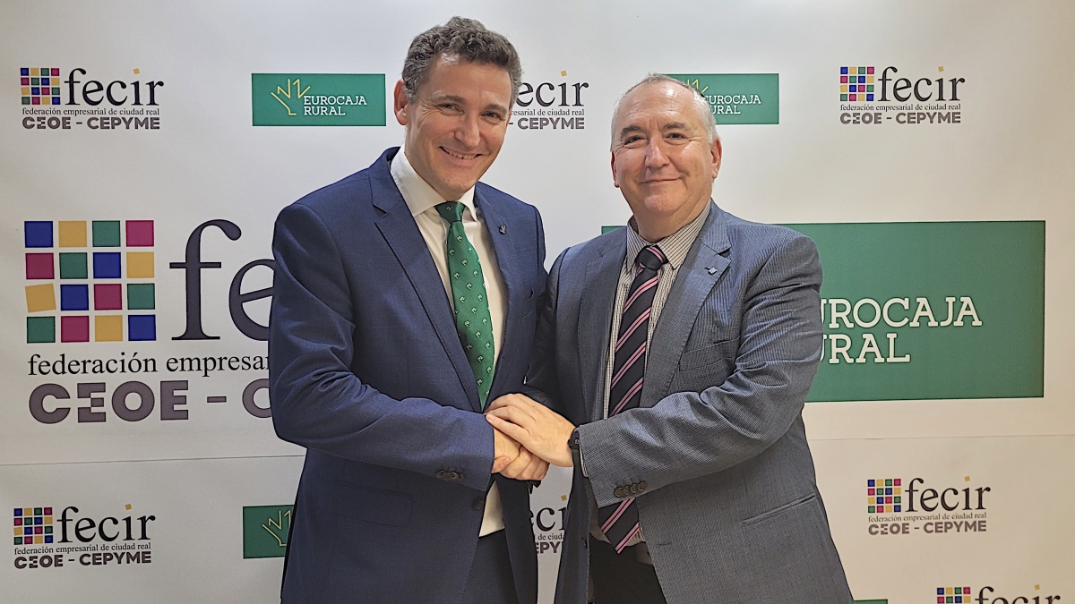 El director general de Eurocaja Rural, Víctor Manuel Martín López, y el presidente de la Federación Empresarial de Ciudad Real (FECIR CEOE-CEPYME), Carlos Marín de la Rubia, han suscrito un convenio de colaboración para contribuir al desarrollo del colectivo empresarial de la provincia ciudadrealeña.