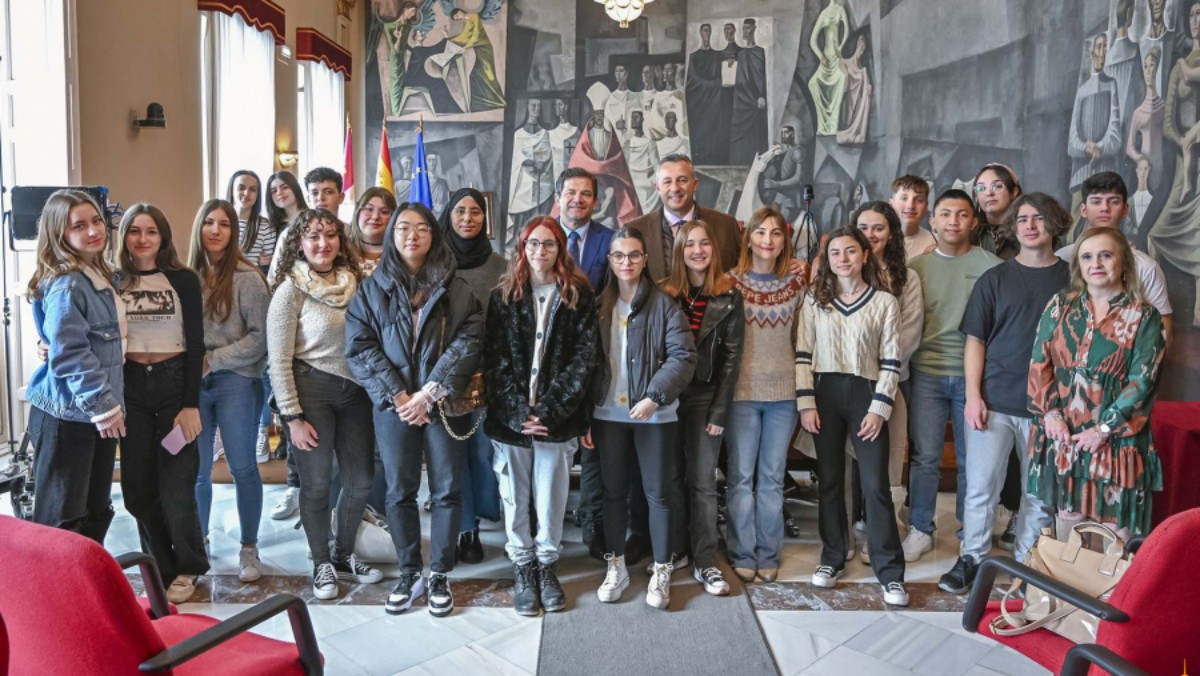 Alumnos de segundo de Bachillerato del IES Clavero Fernández de Córdoba de Almagro han visitado hoy el Palacio de la Diputación de Ciudad Real, donde han sido recibidos por el presidente de la institución, Miguel Ángel Valverde Menchero, y por el vicepresidente cuarto, Adrián Fernández Herguido. Ambos han tenido la oportunidad de dialogar con la directora del centro, María José Moraga Naranjo.