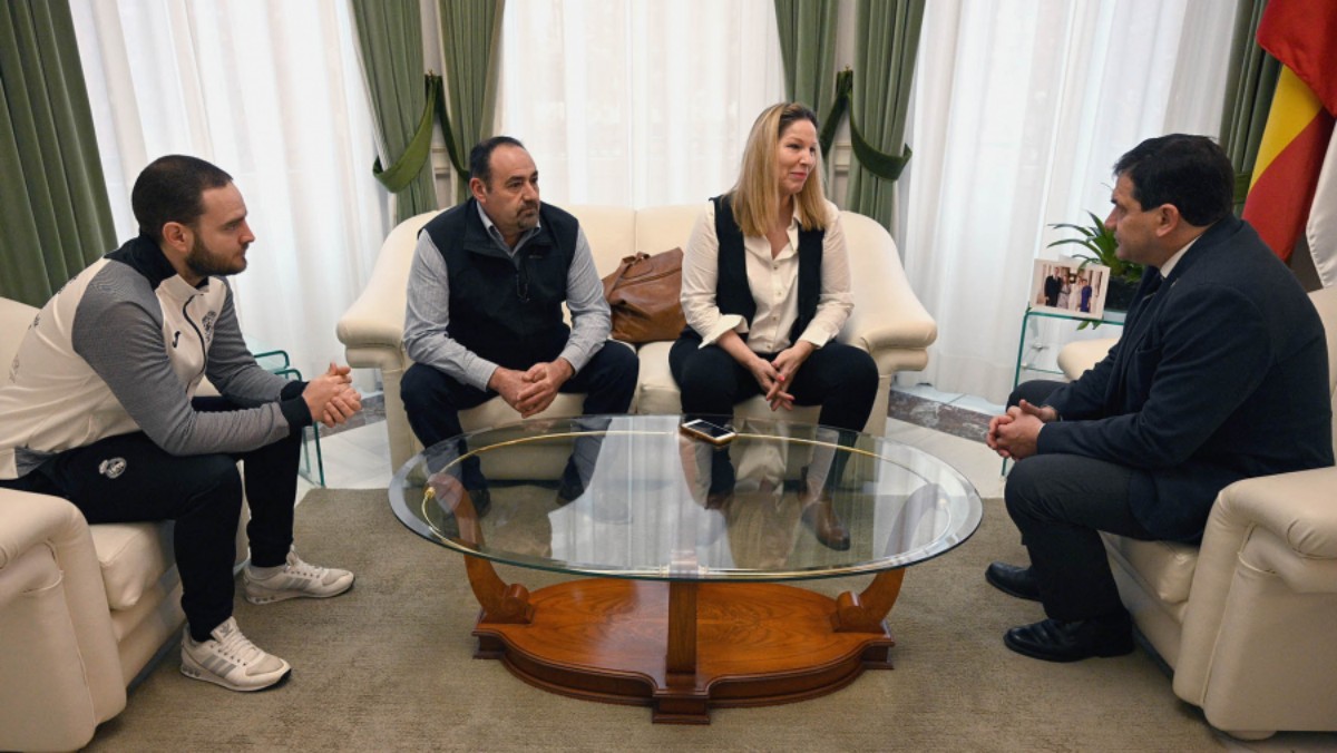 Miguel Ángel Valverde, presidente de la Diputación, se ha dado cita en el Palacio Provincial con la directiva de la Hermandad de Alarcos formada por Frasi López, como presidenta, Miguel Ruedas, como tesorero, y Héctor Rivero, como vicetesorero.