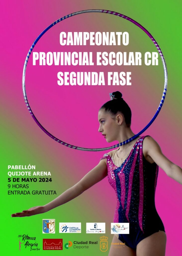 Las gimnastas del club Rítmica Alegría de Ciudad Real volverán a ser anfitrionas de una competición después de un tiempo, será este domingo, 5 de mayo, a partir de las 9 de la mañana en el Quijote Arena, donde se celebrará la segunda fase del Campeonato Provincial Escolar.