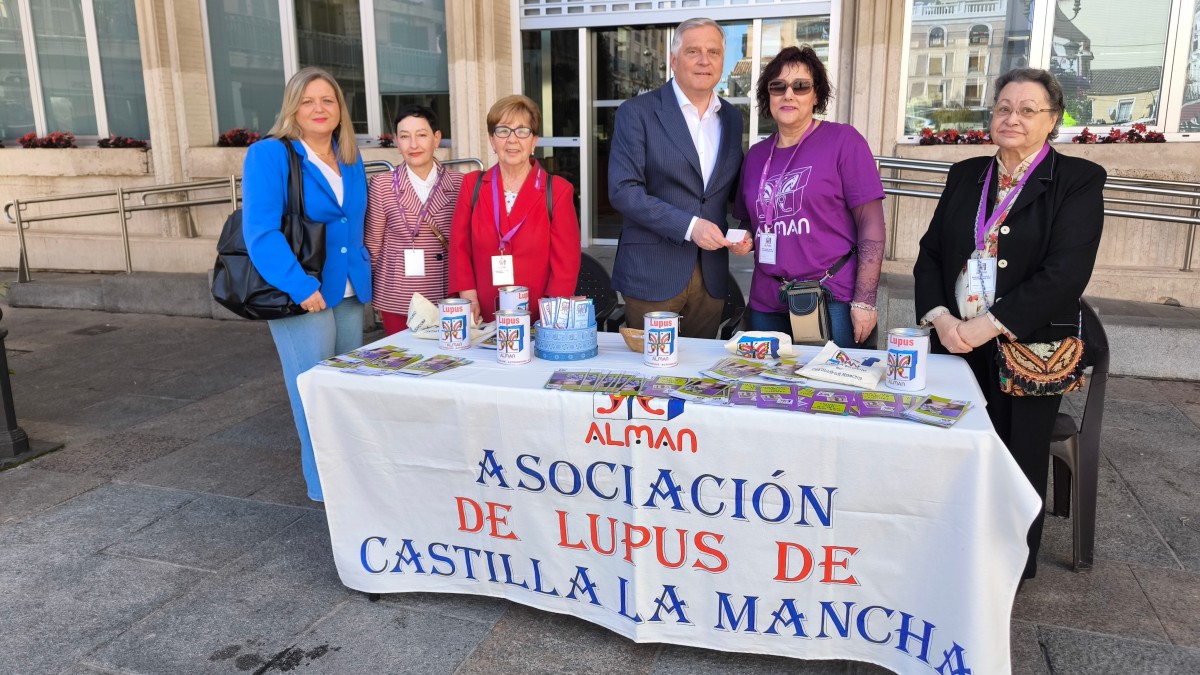 El alcalde de Ciudad Real, Francisco Cañizares y la concejal de Servicios Sociales, Aurora Galisteo, han participado esta mañana en la cuestación de la Asociación de Lupus de Castilla-La Mancha (ALMAN) en la conmemoración del Día Mundial de esta enfermedad.