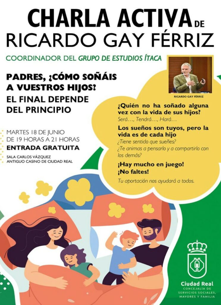 Desde la concejalía de Servicios Sociales, han invitado a la Asociación Castellano Manchega de Familias Numerosas (ACAMAFAN) a que haga una presentación de la asociación y de los servicios que tienen, en el marco previo de la charla activa de Ricardo Gay, coordinador del Grupo de Estudios de ÍTACA, bajo el título ‘Padres, ¿cómo soñáis a vuestros hijos? El final depende del principio’ el próximo martes 18 junio a las 19.00 h en la Sala Carlos Vázquez del Antiguo Casino de Ciudad Real.