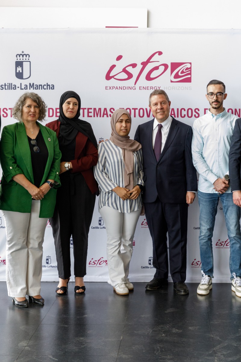 Por último, la delegación del Gobierno regional ha aprovechado la visita para saludar y dar la bienvenida a los dos estudiantes argelinos, Khelifa Boudjenoun y Lasladj Meryem, que completan durante seis meses su formación en ISFOC, ya que forman parte del Máster Dual de Energías Renovables de la Universidad de Castilla-La Mancha (UCLM). Al igual que, a través de la Cátedra de Investigación en Ciencia y Tecnología Química de la UNED, a dos investigadoras científicas africanas en colaboración con las ONGs Harambee y Mujeres por África, para contribuir a que puedan desarrollar su carrera profesional. La primera de ellas, Oumaima Abbou, se ha incorporado el pasado mes de mayo y la otra investigadora se incorporará a finales de verano.
