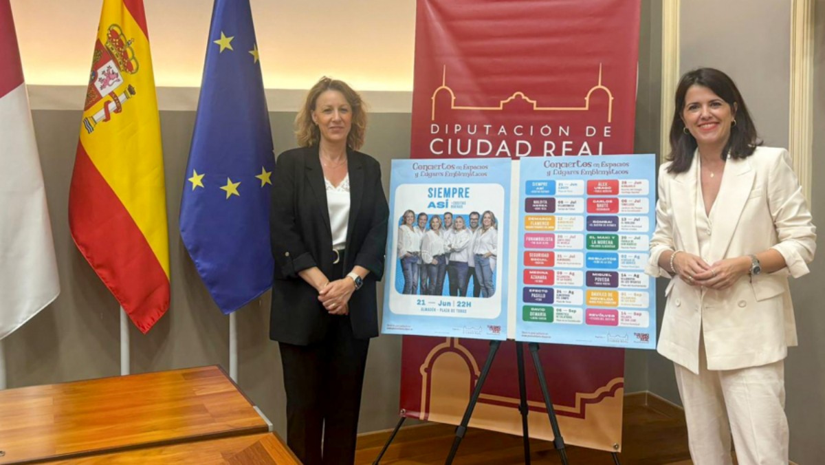El viernes 21 de junio, a las 22.00 horas, comienza en la Plaza de toros de Almadén el primero de los Conciertos en Espacios y Lugares Emblemáticos de la Diputación de Ciudad Real, con la actuación del grupo “Siempre Así” y como teloneros, el grupo de nuestra tierra “Cositas Buenas”. Así lo han anunciado esta mañana la vicepresidenta quinta, delegada del Área de Impulso Sociocultural y Turístico de la provincia, María Jesús Pelayo, y la alcaldesa de Almadén, Raquel Jurado.