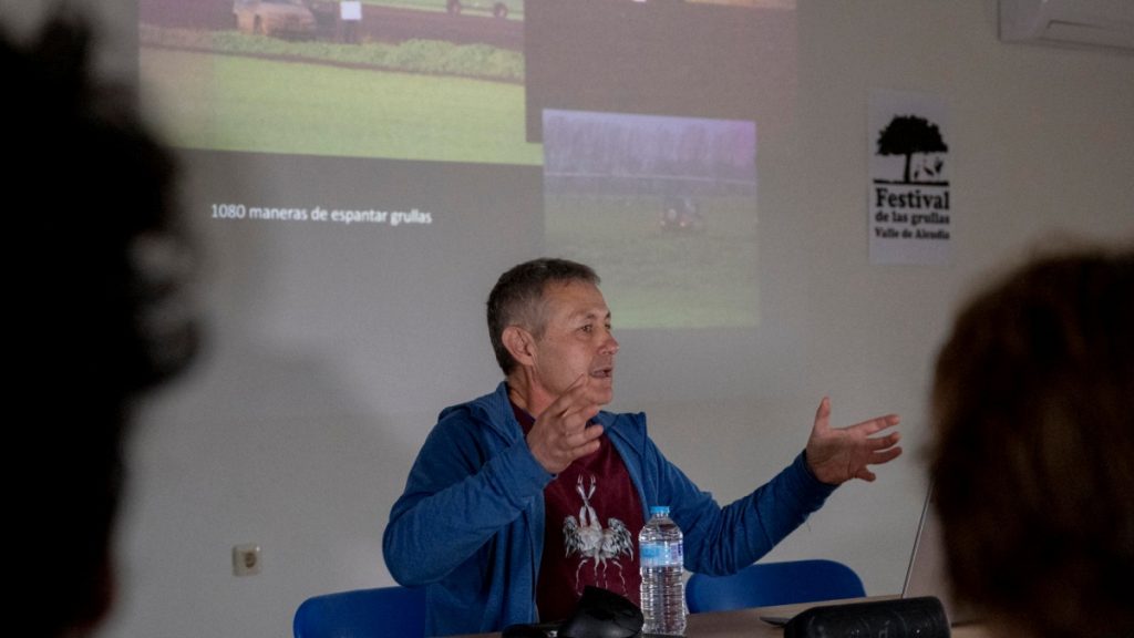 Otra de las ponencias centrales ha sido la del naturalista y fotógrafo Uge Fuertes, que ha ofrecido una visión comparada sobre la gestión de grandes concentraciones de grullas en distintos puntos del mundo.