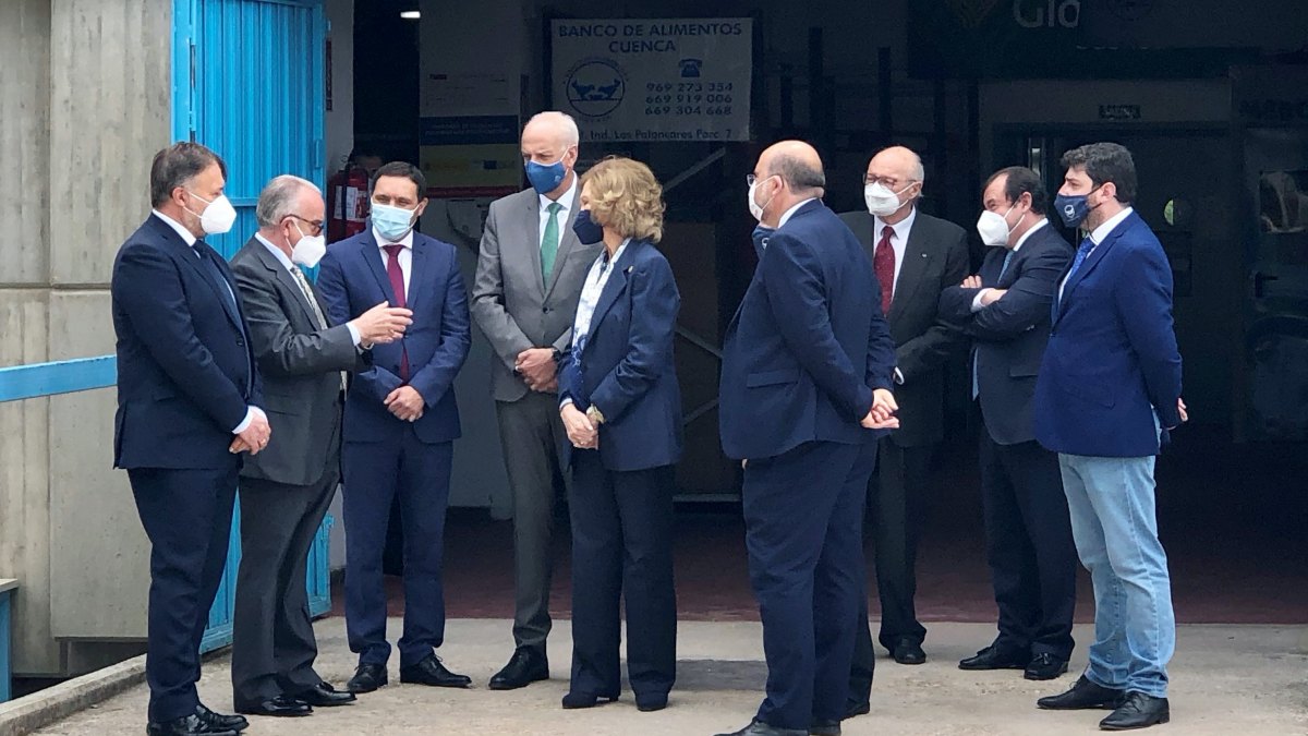 La visita de Su Majestad Doña Sofía se ha iniciado con un acto privado con el presidente de la Asociación Banco de Alimentos de Cuenca, Antonio Villaseñor; y el presidente y el tesorero de la Federación Española de Bancos de Alimentos, Juan Vicente Peral y Gregorio Pérez respectivamente; a la que han asistido como autoridades el propio alcalde, el vicepresidente regional, José Luis Martínez Guijarro; el presidente de la Diputación Provincial, Álvaro Martínez Chana; y el subdelegado del Gobierno en Cuenca, Juan Rodríguez Cantos.