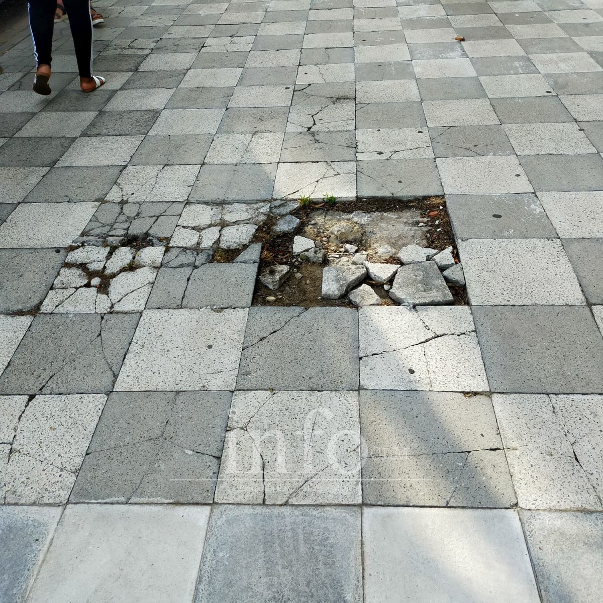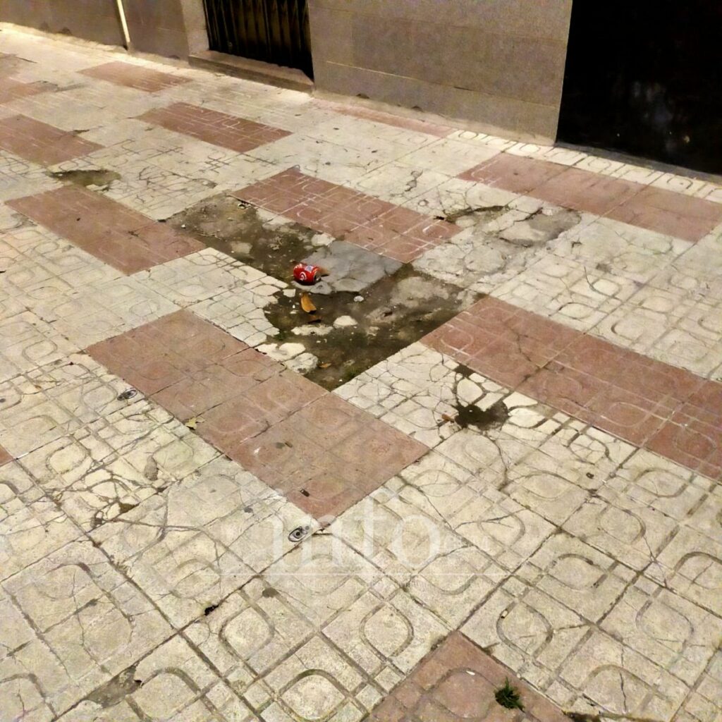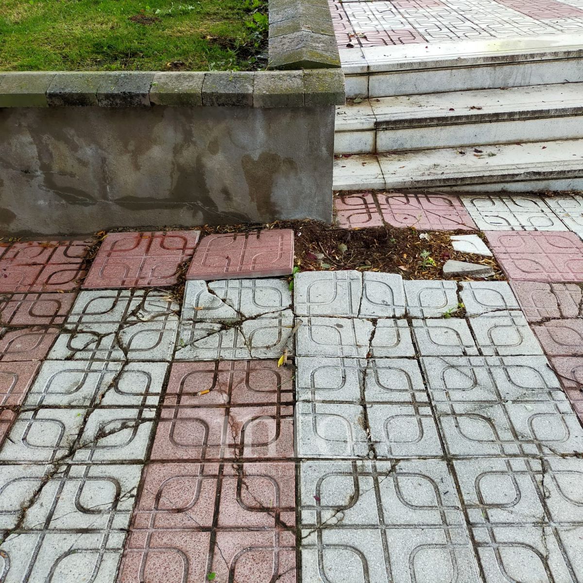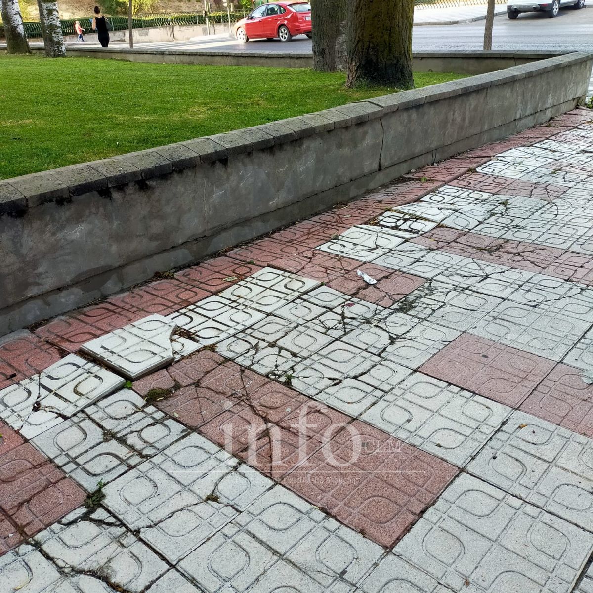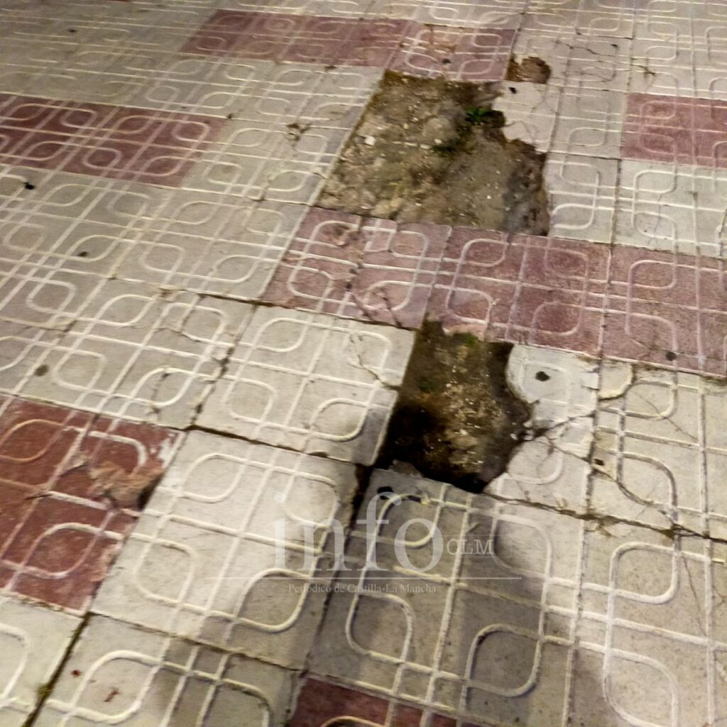 La zona que se encuentra en peores condiciones es la Plaza del Espliego, a cuyo suelo le faltan ya numerosas baldosas y muchas de las que permanecen en su sitio están partidas. El bar de esta parte del barrio, en la que también hay algunos establecimientos comerciales, se ha resignado a poner su terraza sobre los destrozados adoquines en el que ya está creciendo hierba y los vecinos deben esquivar algún socavón situado a la salida de los portales.