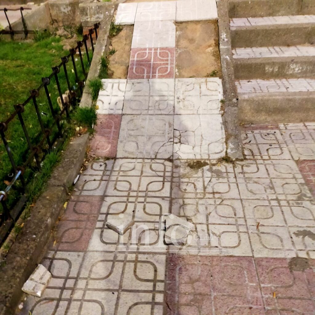 «La plaza lleva así ya diez años», se lamenta la presidenta de la asociación de vecinos de San Fernando, Nina Manzanares, sobre uno de los puntos de referencia del barrio, en el que también se pueden observar escalones y rampas rotas, lo que supone un peligro para personas con problemas de movilidad.