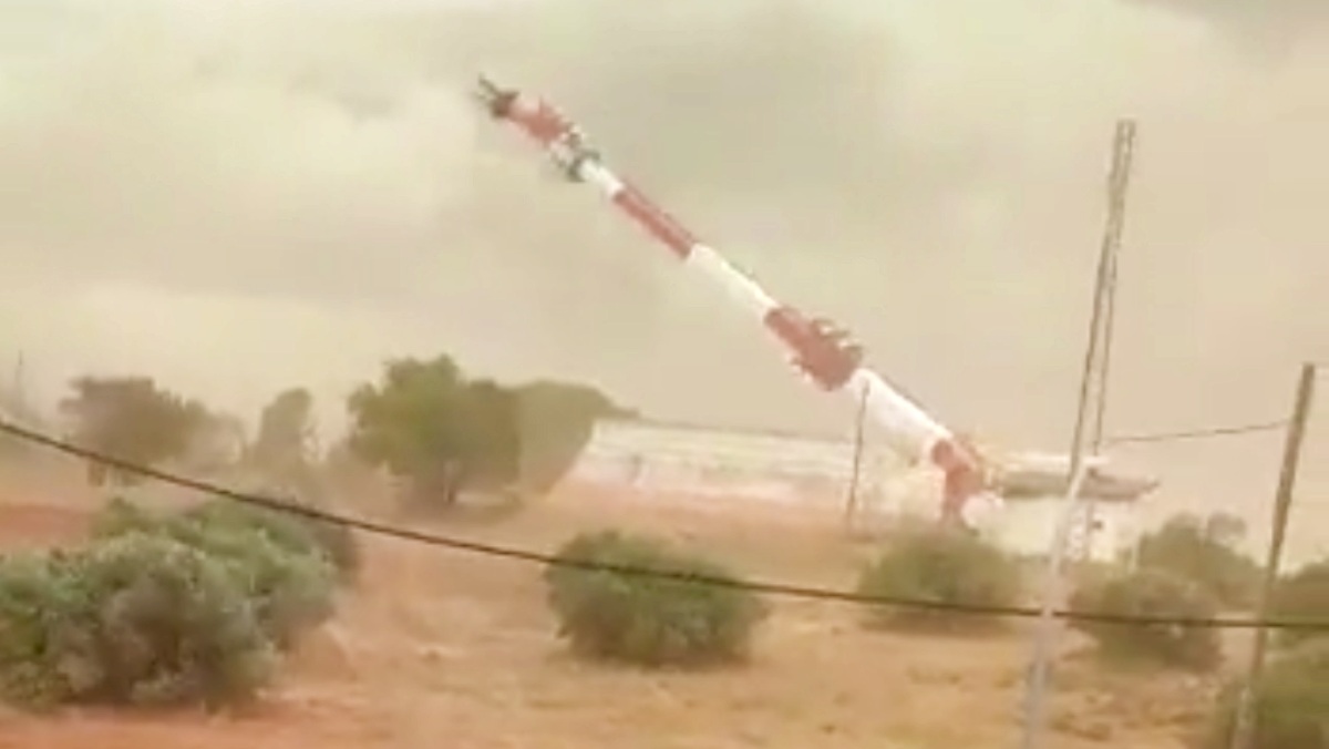 El Consistorio de Motilla, en sus redes sociales, ha compartido las fotografías en las que se puede ver el repetidor, de varios metros de altura, completamente tumbado.