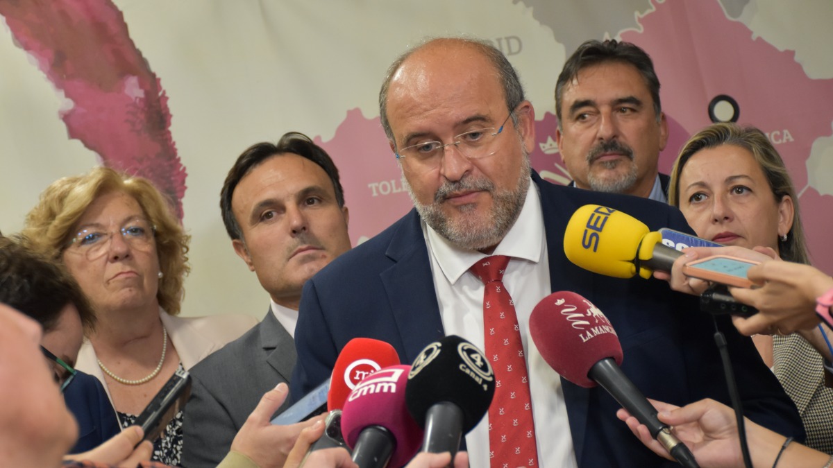 Anuncio que ha hecho Martínez Guijarro durante la celebración de la entrega de premios del concurso ‘Vino y Cultura’ del Consejo Regulador Denominación de Origen La Mancha que se ha desarrollado en el Auditorio Municipal de San Clemente donde ha estado acompañado de la alcaldesa de la localidad, Rosario Sevillano; el presidente de la Diputación de Cuenca, Álvaro Martínez Chana; la subdelegada del Gobierno en Cuenca, Marí Luz Fernández; y el presidente del Consejo Regulador de la Denominación de Origen La Mancha, Carlos David Bonilla.