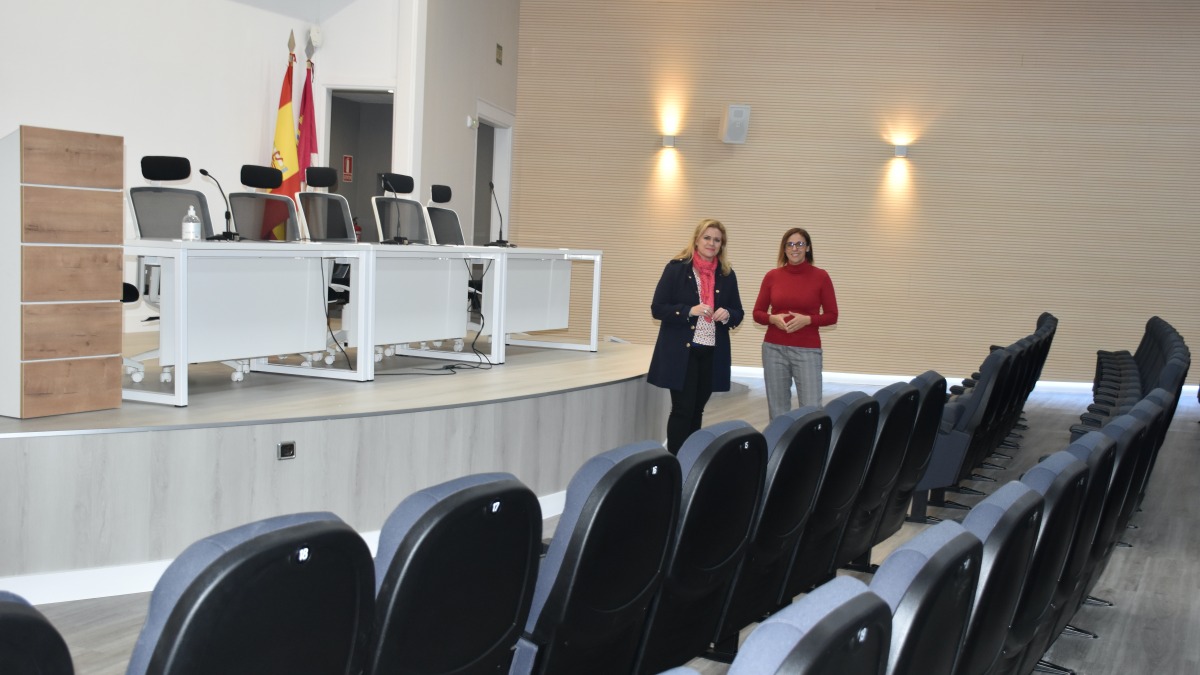 La delegada de la Junta en Cuenca, María Ángeles Martínez y la delegada provincial de Educación, Cultura y Deportes, Sonia Isidro, han visitado el salón para conocer estas mejoras en el salón que tiene capacidad para más de un centenar de personas.