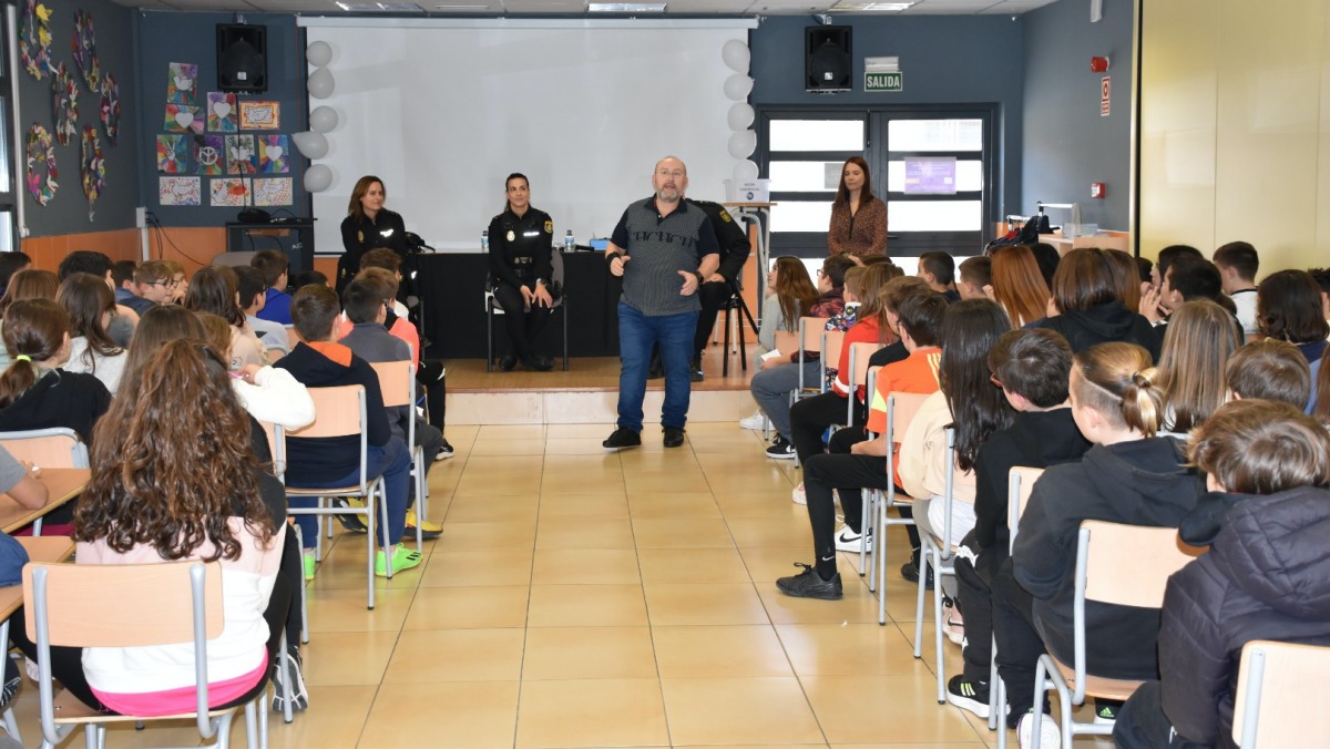 Junto al actor en la charla han estado miembros de los equipos directivos además de la coach Eva Marí y en el caso del colegio Isaac Albeniz la subinspectora delegada de Participación Ciudadana, Consuelo Martínez.
