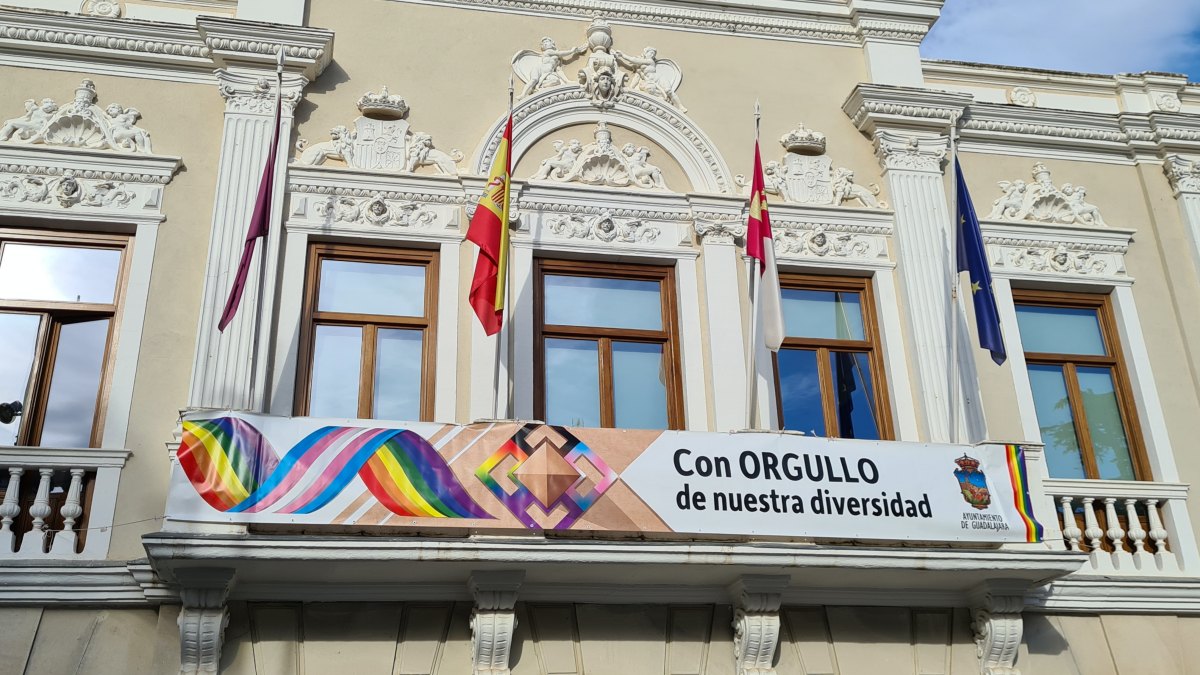 El Ayuntamiento de Guadalajara ha reiterado este lunes su compromiso con una sociedad diversa y tolerante en el Día Internacional contra la Homofobia, la Transfobia y la Bifobia, colgando una pancarta en favor de la diversidad del balcón de la Alcaldía.