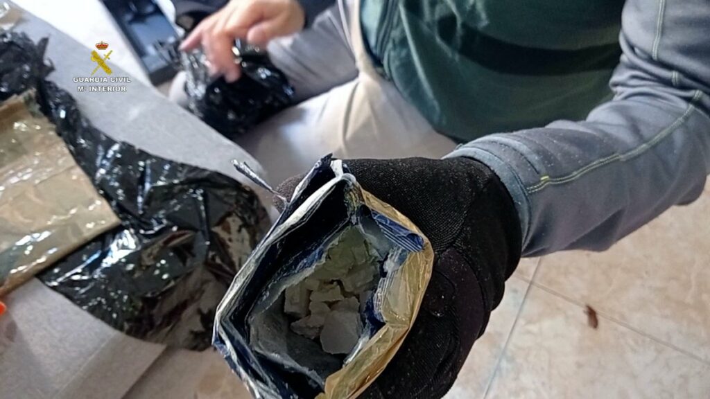 La Guardia Civil en el marco de la operación “PROTONES” ha desmantelado una organización criminal dedicada al tráfico de drogas que operaba en las provincias de Madrid, Burgos y Guadalajara. Se ha detenido a 10 personas y se han incautado cerca de 6 kilogramos de cocaína, 5 kilogramos de hachís y 6 kilogramos de sustancia de corte. También se han intervenido 1 vehículo, 2 armas de fuego, 21 teléfonos móviles y cerca de 10.000 euros.