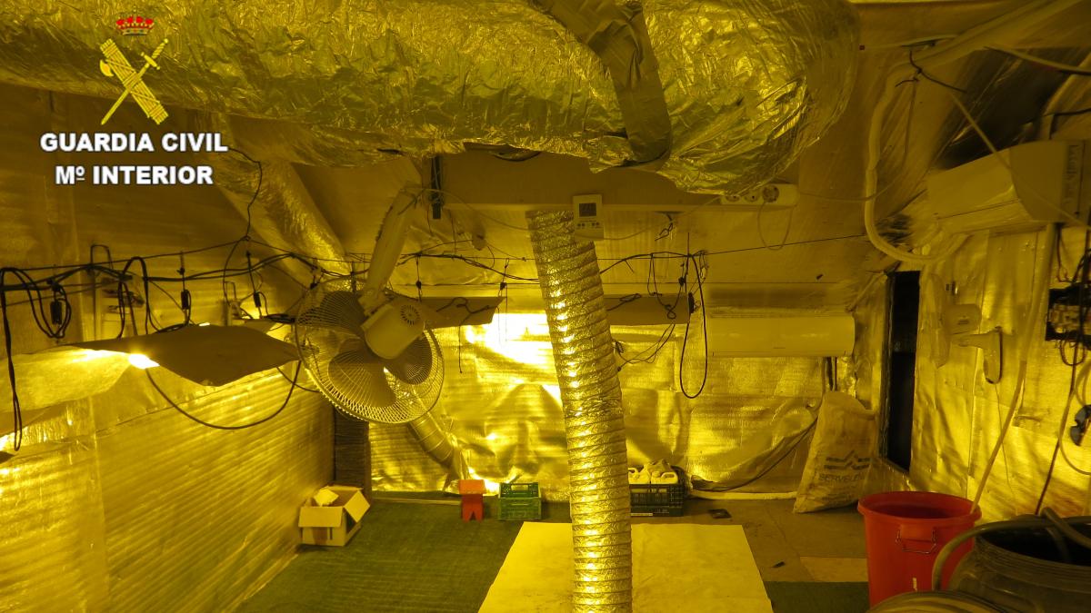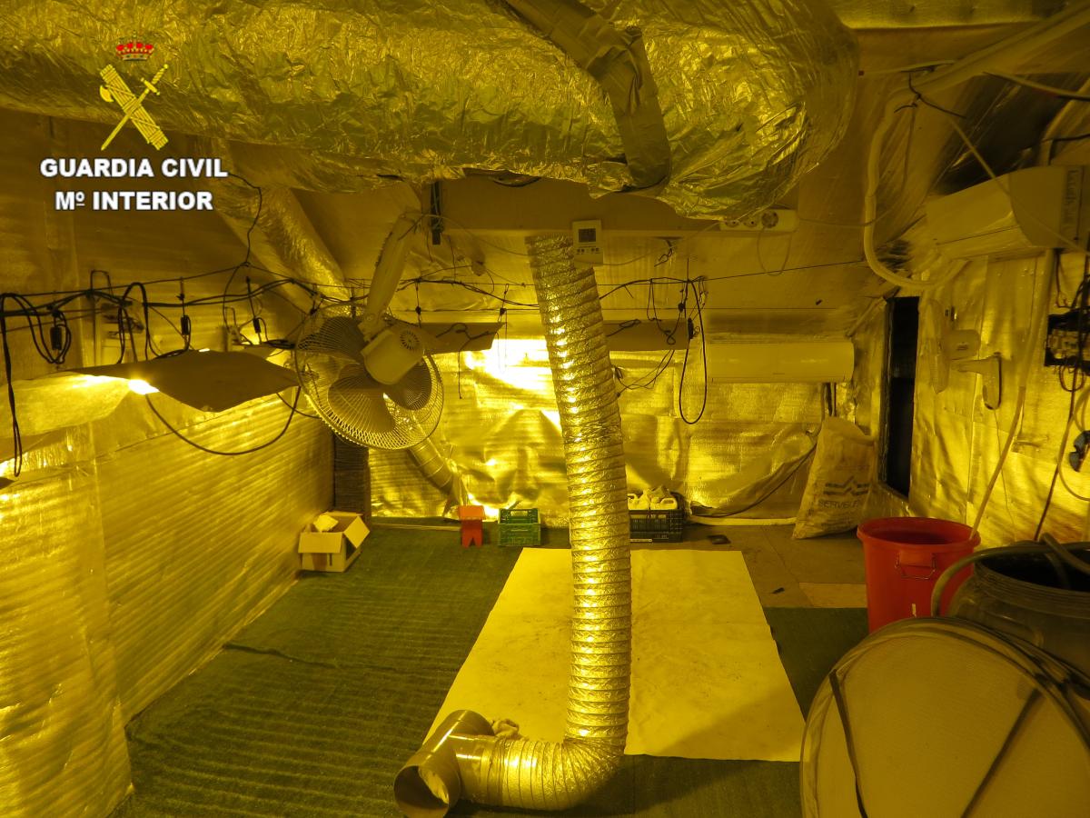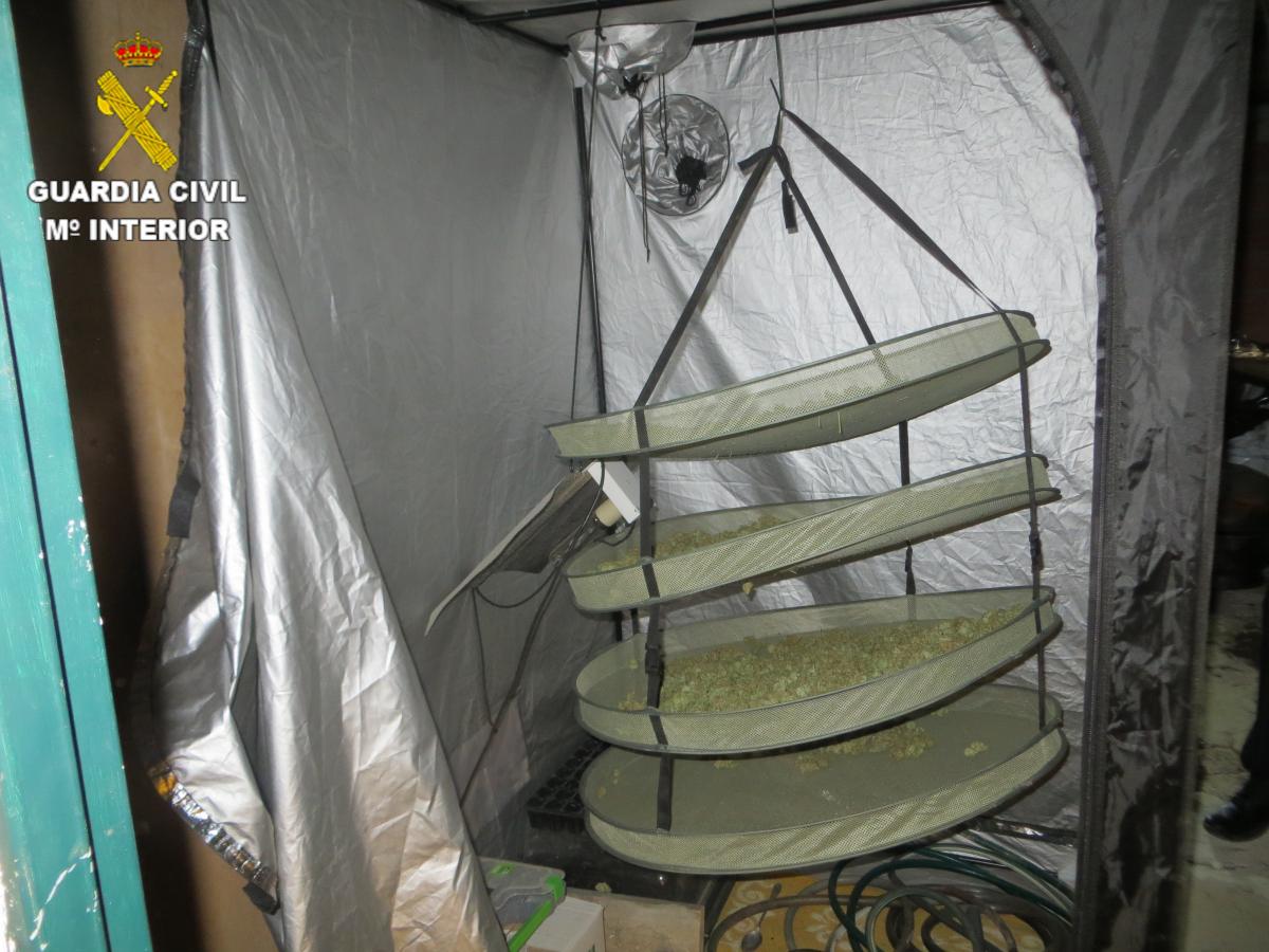 La Guardia Civil intervino más de 3 kilogramos de cogollos de marihuana dispuestos para su posterior distribución. Durante el registro también se verificó que este cultivo se abastecía de energía eléctrica de manera ilícita, un hecho que se constató con técnicos de la empresa de suministro eléctrico.