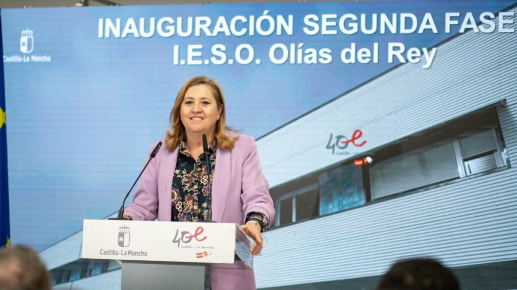 Esto mismo lo ha destacado la consejera de Educación, Cultura y Deportes, Rosa Ana Rodríguez, en la inauguración, a cargo del presidente de Castilla-La Mancha, Emiliano García-Page, de la segunda fase del IESO ‘Olías del Rey’ de la misma localidad. En el acto, también ha estado presente el presidente de la Diputación de Toledo, Álvaro Gutiérrez; el delegado de la Junta en la provincia de Toledo, Javier Úbeda; el delegado de Educación, Cultura y Deportes, José Gutiérrez; y la alcaldesa de Olías, Charo Navas; entre otras autoridades.